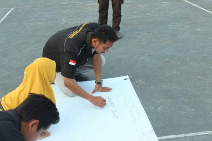 PG PAUD FKIP UNIMUDA SORONG: Mahasiswa di Lingkungan Fakultas Keguruan dan Ilmu Pendidikan Universitas Pendidikan Muhammadiyah Sorong pada tanggal 29 November 2019, mengadakan kegiatan Pentas Seni sekaligus menggalang 1000 tanda tangan untuk mendukung perjuangan para guru di Indonesia.