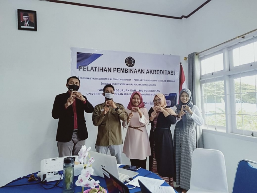 Pendidikan PG-PAUD FKIP UNIMUDA Sorong. Program Studi PG-PAUD telah mengikuti kegiatan Pelatihan Pembinaan Akreditasi selama 2 (dua) hari dari tanggal 26 - 27 Juni 2020 yang diselenggrakan oleh Lembaga Penjaminan Mutu (LPM) UNIMUDA Sorong. Kegiatan ini melibatkan 3 (tiga) Program Studi yang berada di bawah FKIP UNIMUDA Sorong. Program Studi tersebut yaitu: Program Studi Pendidikan Ilmu Pengetahuan Alam (P.IPA), Program Studi Pendidikan Teknologi Informasi (PTI), dan Program Studi Pendidikan Guru Pendidikan Anak Usia Dini (PG-PAUD). Tujuan dari Kegiatan ini adalah untuk membekali pengetahuan lebih dan memberikan informasi kepada pimpinan dan dosen - dosen program studi serta meningkatkan kualitas mutu Program Studi melalui reakreditasi yang berdasarkan pada instrumen baru 9 standar pada Instrumen APS 4.0. Pelatihan tersebut dihadiri oleh Dekan, Wakil Dekan, Ketual LPM, Sekertaris LPM, Ketua Program Studi, Sekertaris Program Studi dan Para Dosen dari ke-3 Program Studi yang mengikuti.