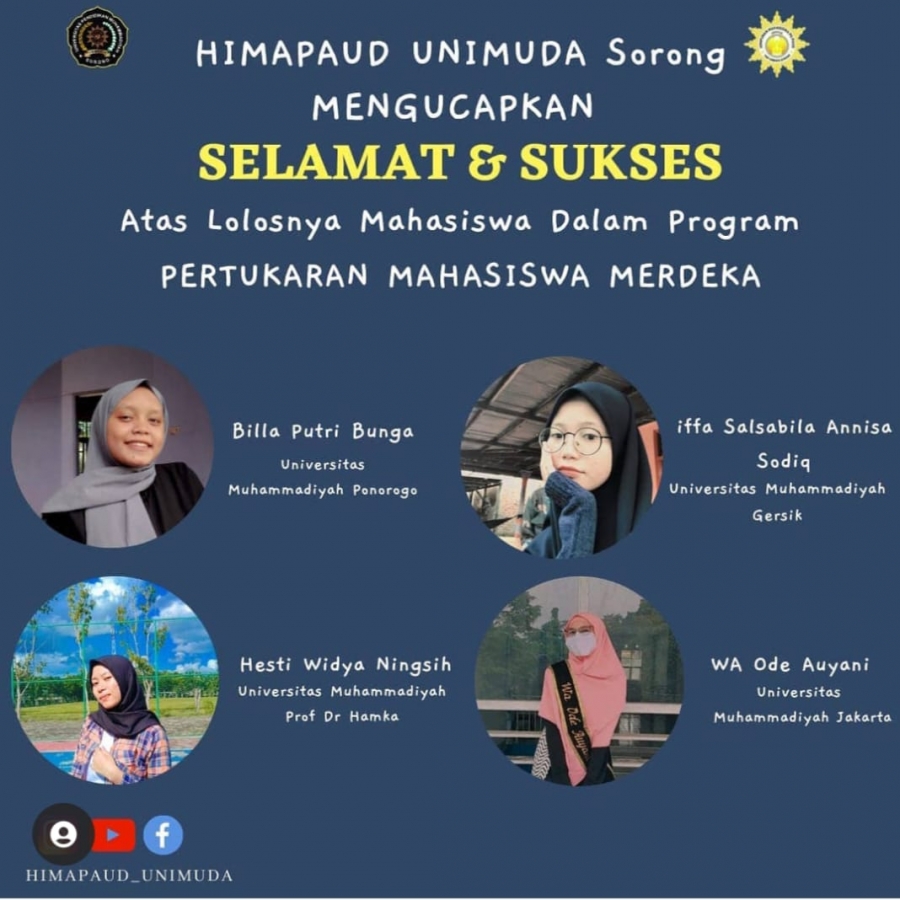Dalam kesempatan ini ada 4 orang mahasiswa PGPAUD yang lolos mengikuti program Pertukaran Mahasiswa Merdeka tahun 2021, diantaranya: